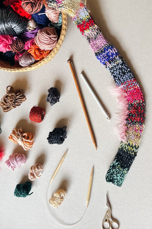 It's so fun to see something come to life from your own hands, playing with colors. I did it, even I had never knitted before. Just a very small problem: it's addictive😉