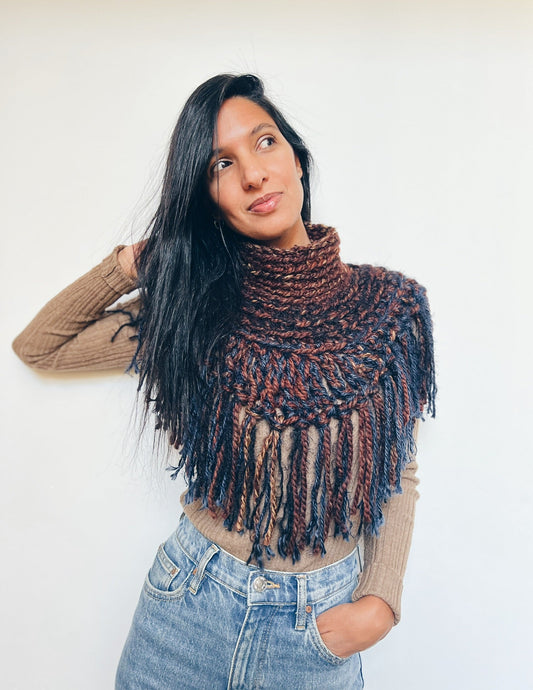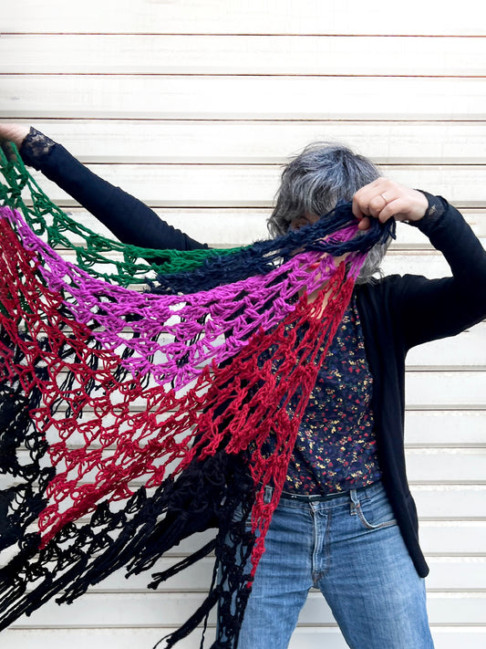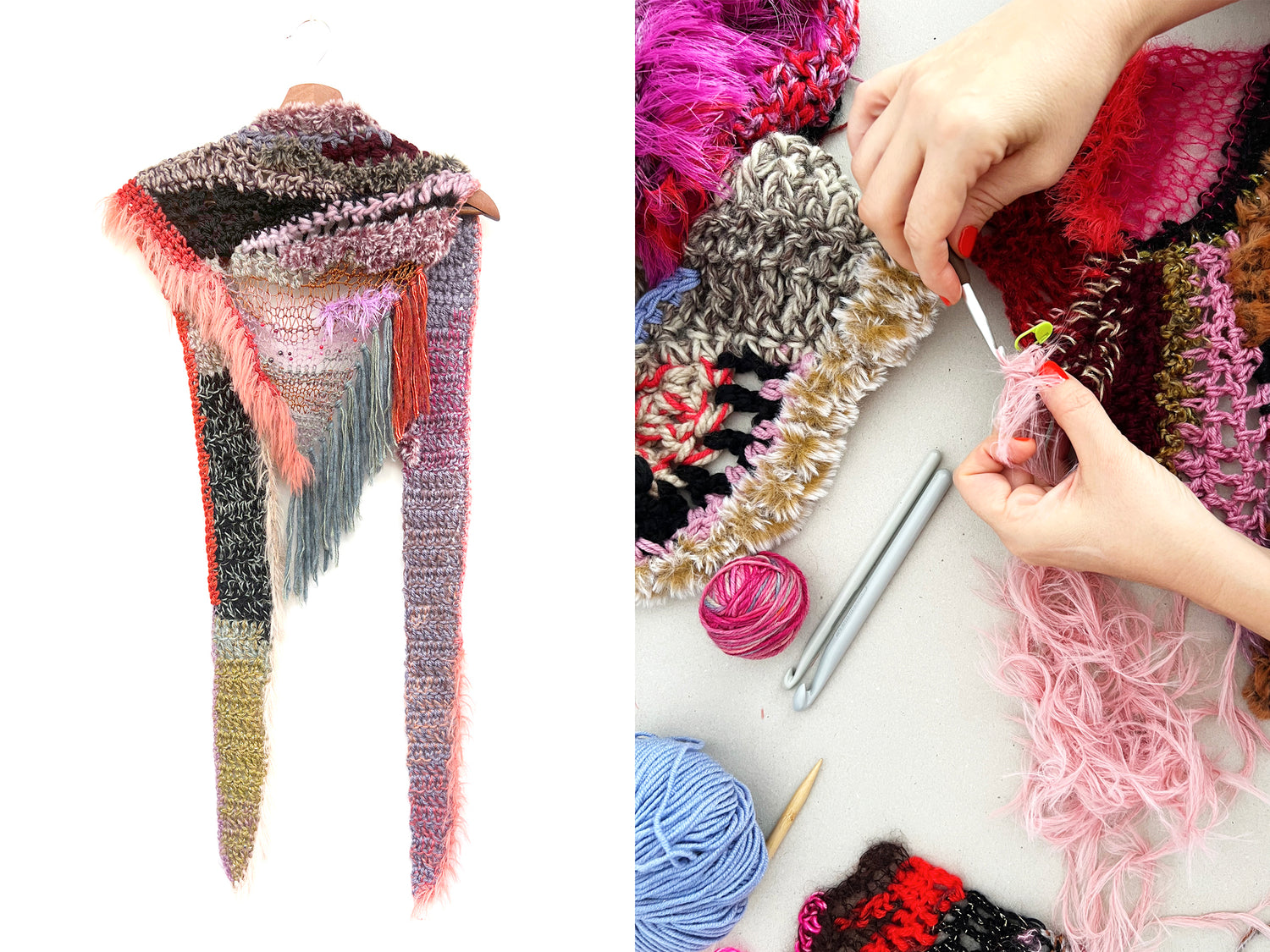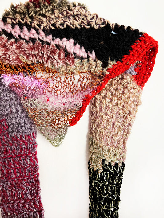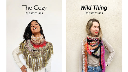 Mix crochet and knitting, change needles and hooks, layer textures and fibres and create a bold triangle shawl that's pure wearable art—while discovering a fearless sense of play you won't want to stop.