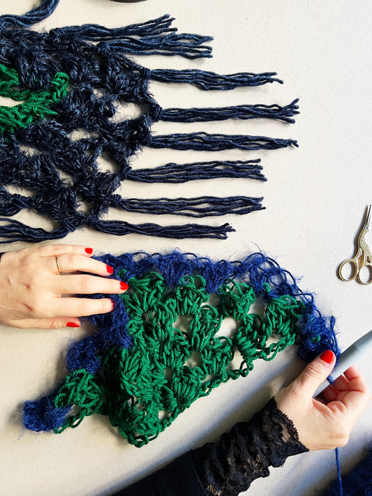 Begin with the FreeSpirit Shawl Workshop to explore playful color mixing and textures while creating a bohemian shawl.