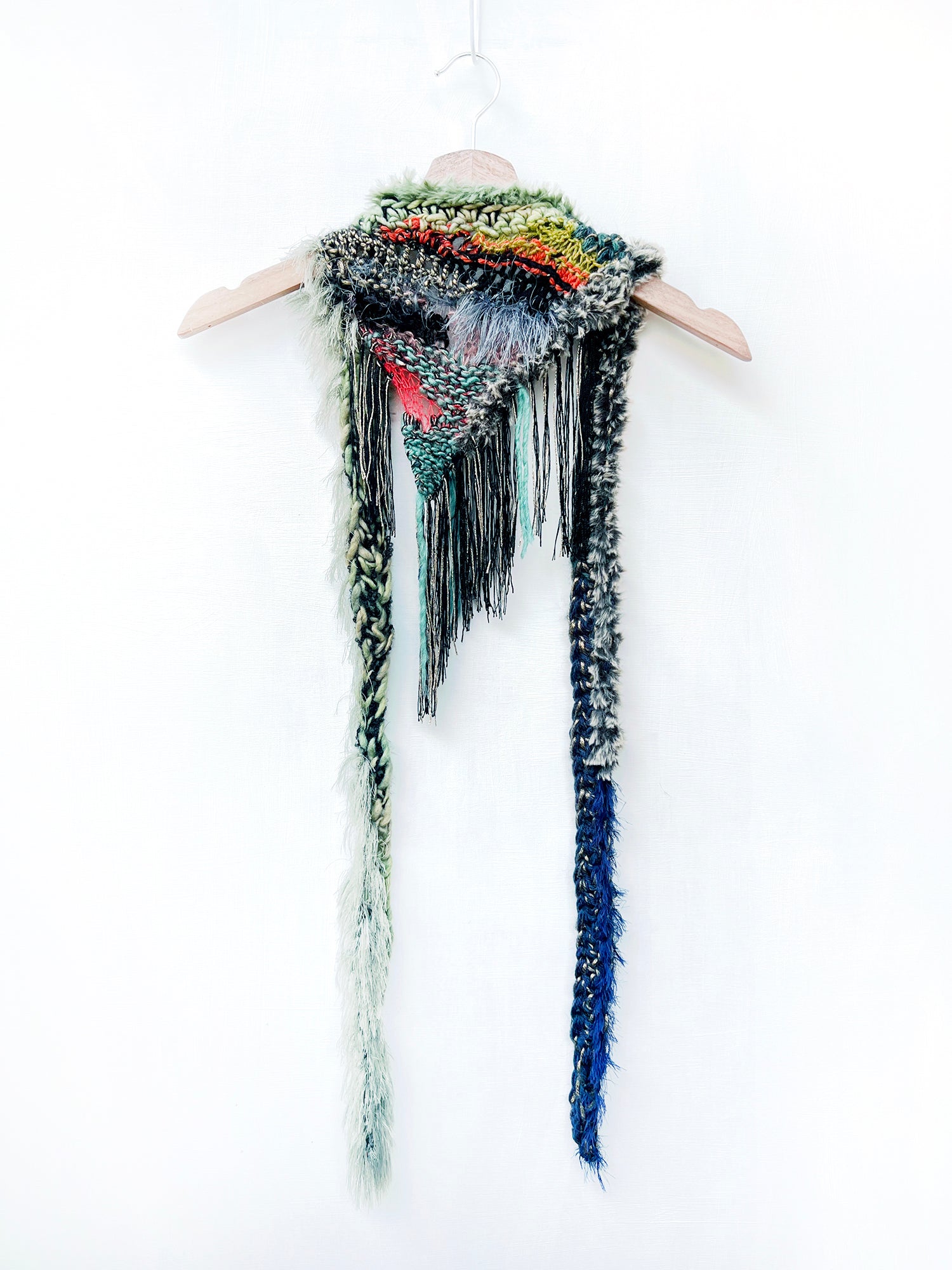 Crafted with luxurious textured yarns, this one-of-a-kind treasure sits close to your collarbone like a whisper of wearable art. It keeps your neck cozy and warm without any bulk, so you can wear it comfortably from morning to night. Perfect for adding a touch of wild beauty without overwhelming your look.