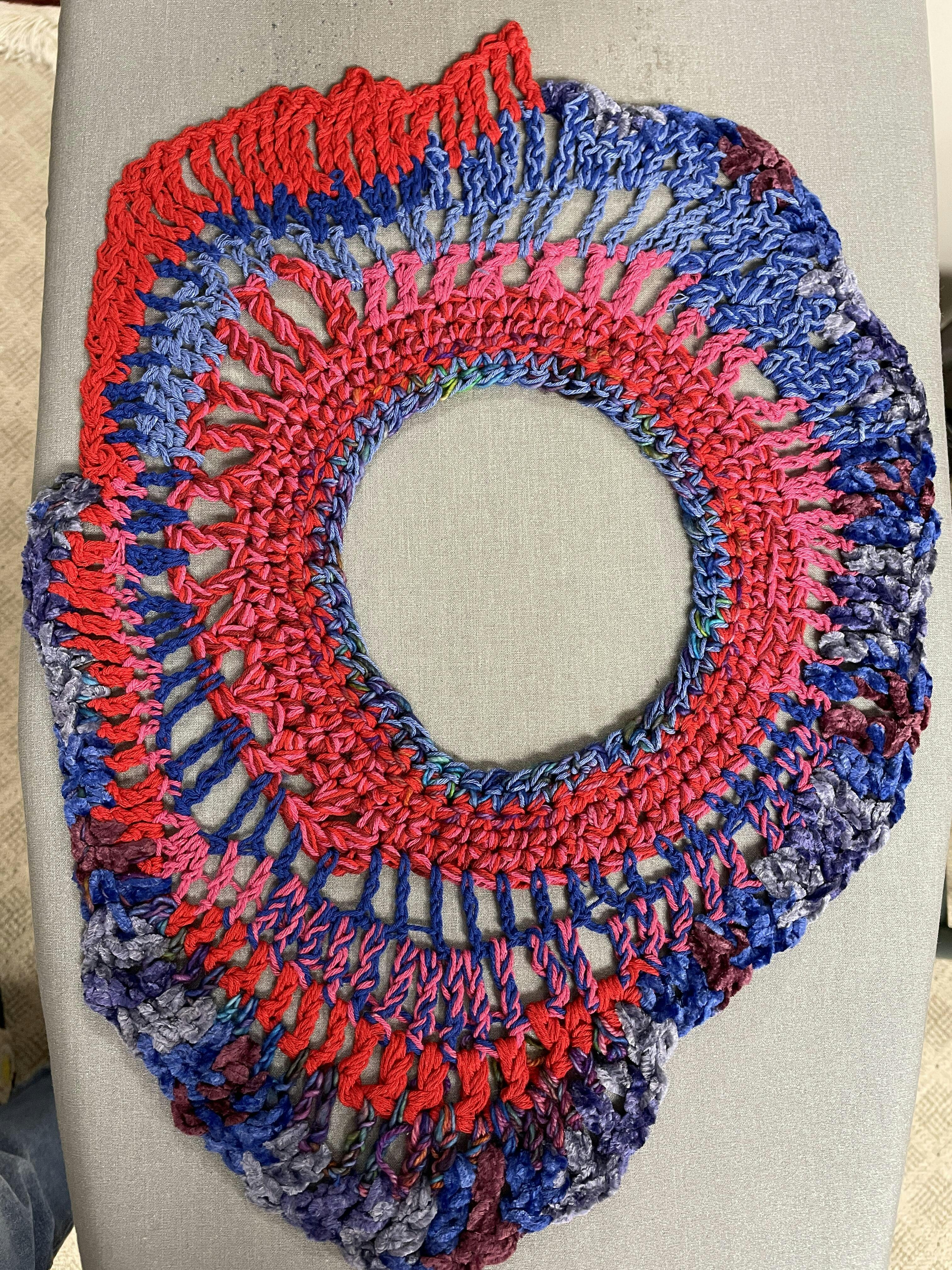 I soooo enjoyed the Dreamcatcher Neckpiece Masterclass which was developed and led by a MASTER teacher. This, like all of Aluma's other courses, is incredibly well -organized and filled with reams of information regarding colour and yarn choices and... much much more! As she leads you patiently, with encouragement, step by step through the crochet process, you feel her joy which is truly contagious and in the end you create a work of art! I've made one for me, one for a friend and will be making more in the new year.