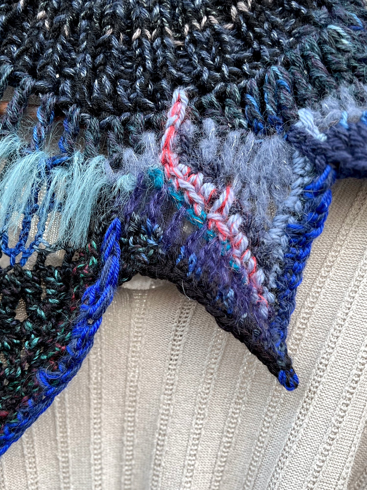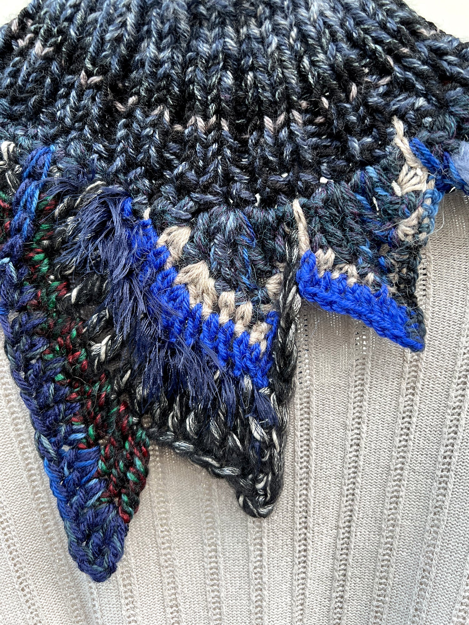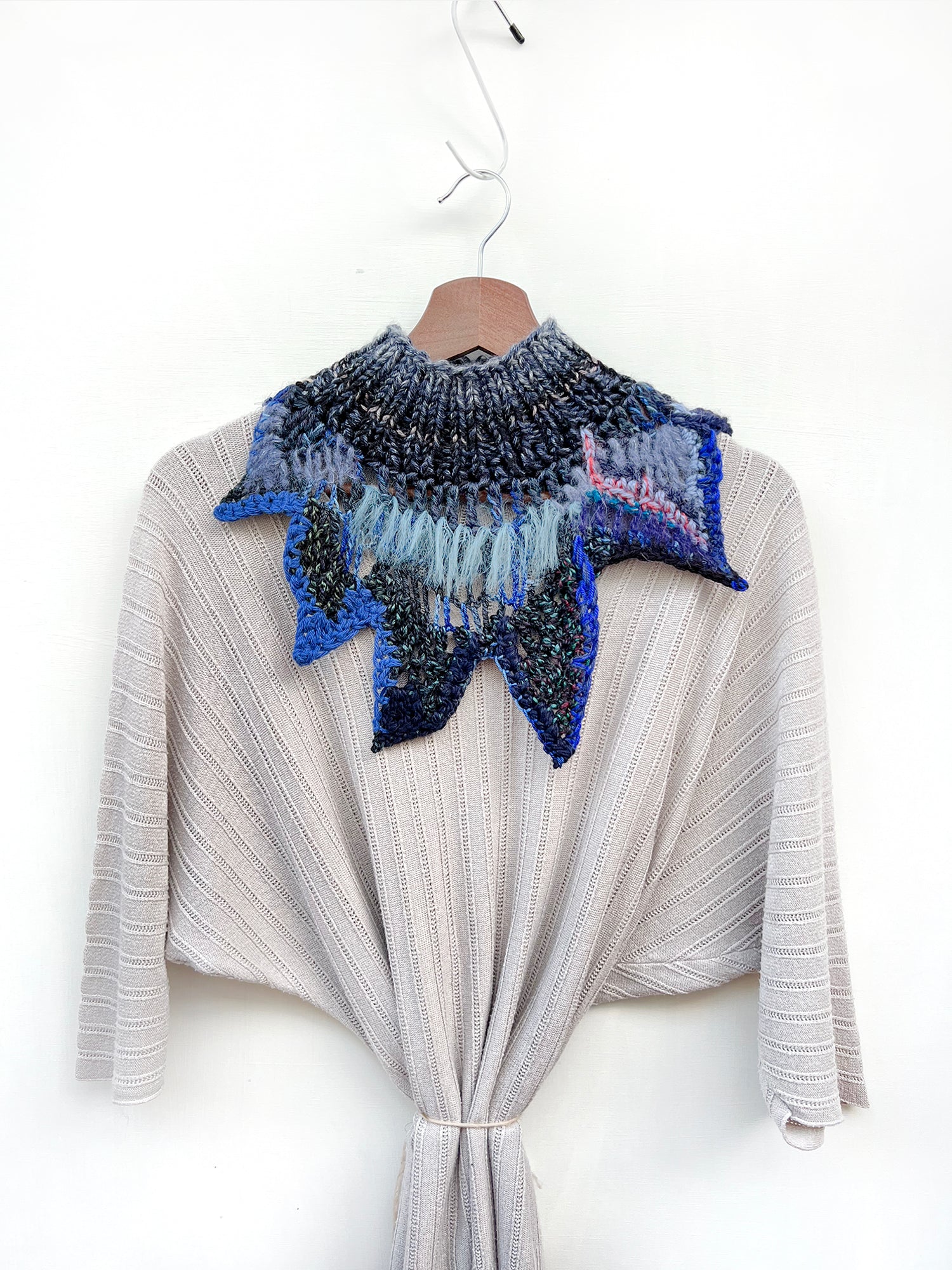 Envuélvete en este collar artesanal único y siente la calidez de algo verdaderamente especial. Hecha a mano con una lujosa mezcla de hilos de textura suave, un toque de piel sintética y flecos sutiles, esta pieza está diseñada para atesorarse durante años.